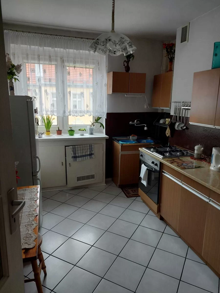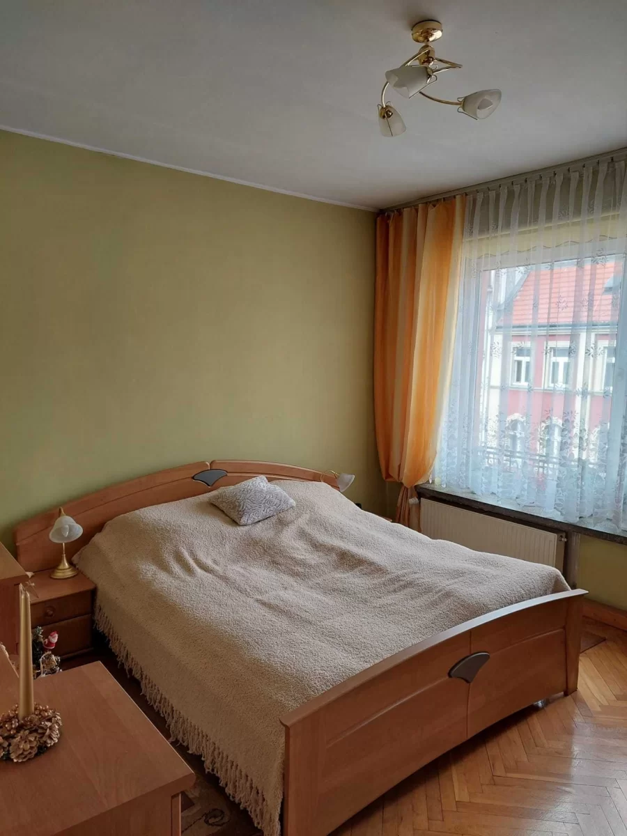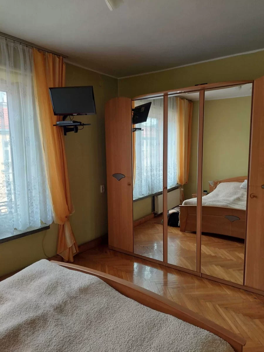 Mieszkanie całkowicie umeblowane i w pełni wyposażone: pralka, lodówka, mikrofala, kuchenka, odkurzacz, TV , balkon. Mieszkanie ma 54 m2 i składa się z pokoju gościnnego, oddzielnej sypialni, przedpokoju, łazienki wraz z WC i piwnicy. Ogrzewanie gazowe CO.
